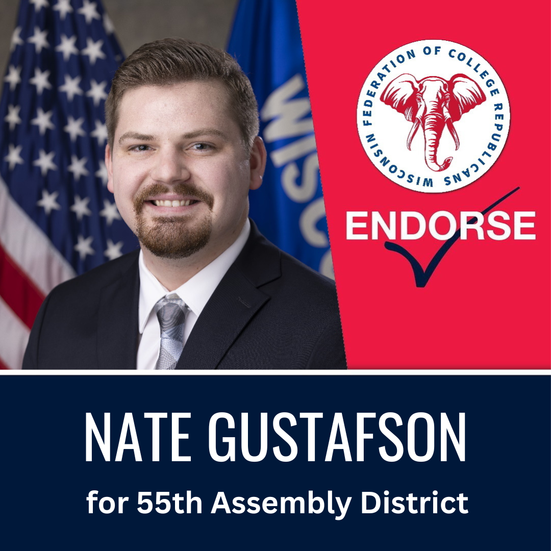 On February 27, 2024, the Wisconsin College Republicans endorsed State Representative Nate Gustafson (R-Fox Crossing) of the 55th Assembly District. Representative Gustafson was our first state level endorsement, and one that we were proud to make. He is a conservative fighter with a proven record, representing youth in government. Representative Gustafson has been a great friend of our College Republicans since taking office and is a stalwart fighter for unapologetic conservative values. We are thrilled to be working with him and all conservatives in the Fox Valley to secure a majority for Wisconsin Republicans in the State Assembly. Representative Gustafson is a key model for our students and members on what being a strong conservative and Republican means in the state of Wisconsin.